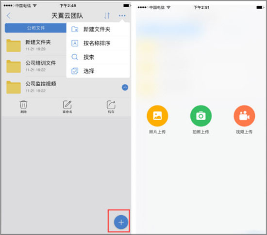 超级管理员及文件管理员在公司文件列表点击上传按钮,弹出上传框,安卓端可选择拍照、照片、视频、文件上传;iOS端可选择拍照、照片、视频上传,选择相应的文件后,点击确定。