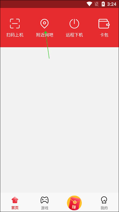 进入app后在主页顶部找到附近网吧。