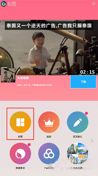 1、在玩图主界面中,点击功能栏目中的“拼图”;