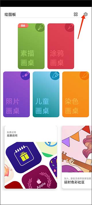 1、首先我们先打开DrawingDesk绘图板手机版,点击主页右上角的小齿轮