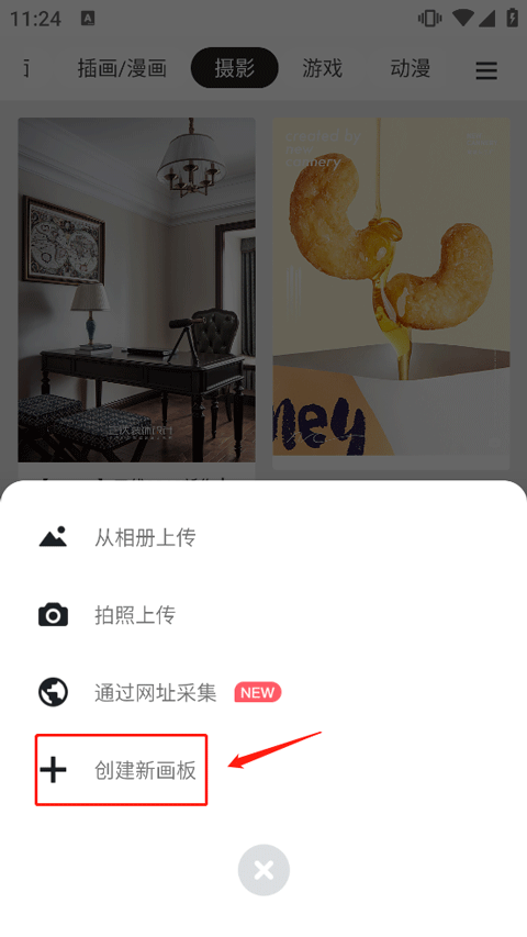 3、创建自己的画板,整理和展示你的采集,让别人更了解你。
