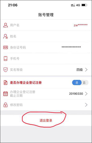 3、验证通过后,即可在APP的“账号管理”界面对“是否办理企业登记注册”和“截止日期”选项进行设置。